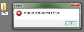 CON, PRN, AUX, CLOCK$, NUL, COM1, COM2, COM3, COM4, COM5, COM6, COM7, COM8, COM9, LPT1, LPT2, LPT3, LPT4, LPT5, LPT6, LPT7, LPT8, and LPT9.
